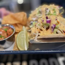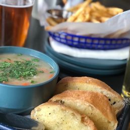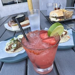Ambience - did a nice job of trying to camouflage the street noise by using a water feature. The patio chairs could use cushions, your bottom becomes a waffle, uncomfortable Food - mixed reviews from our table. Bangers and mash and the tri fries were enjoyed. But the fried chicken sandwich was a little too crispy and street dog had condiments that weren't complimentary Drinks- highlight was the pint glass of mimosas Overall, for a casual sunny afternoon for a drink , I would try it out.